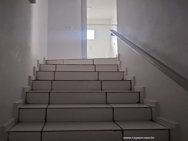 SOBRADO - Descrição: 2 quartos, 2 banheiros, porcelanato, sala, cozinha americana com armários e pia de granito, lavanderia, área de lazer com churrasqueira, com bancada, pia de apoio e espaço para mesa, corredor com acesso à rua, quartos no andar de cima, 2 vagas de garagem cobertas.
