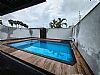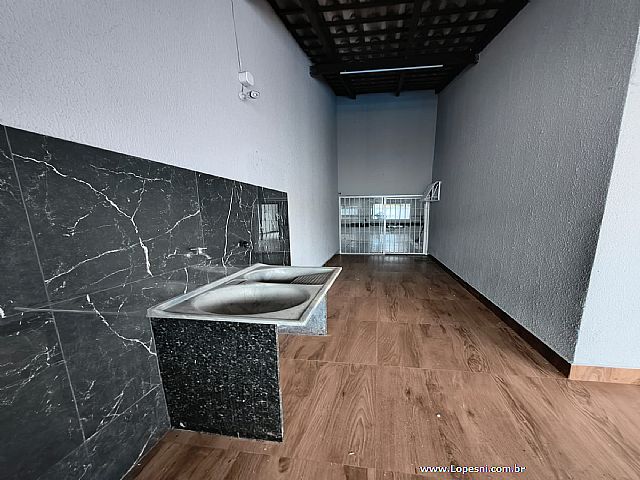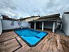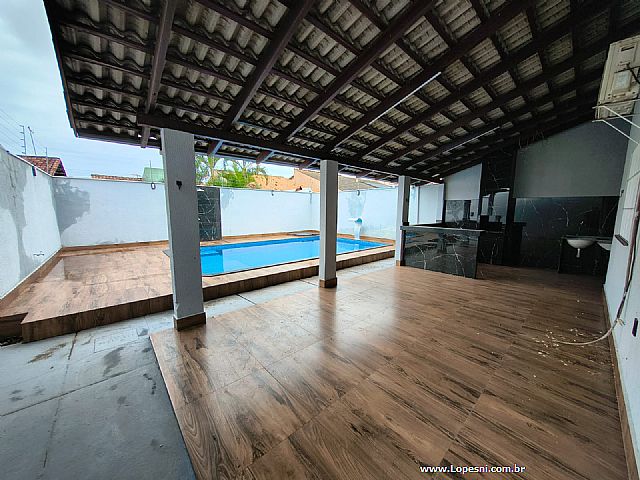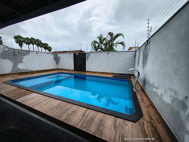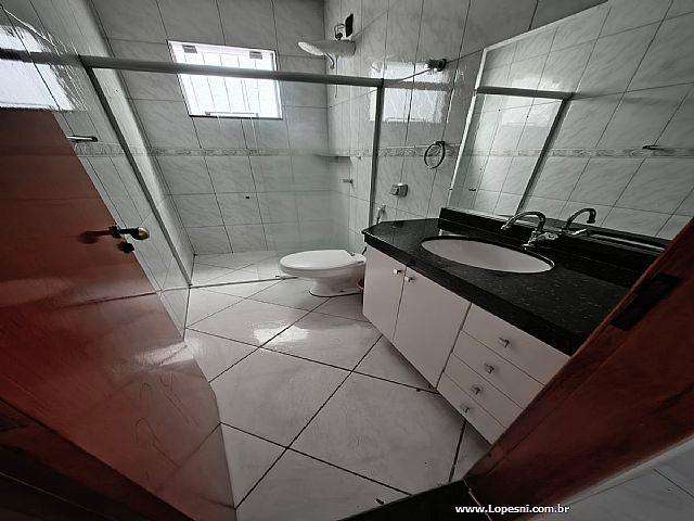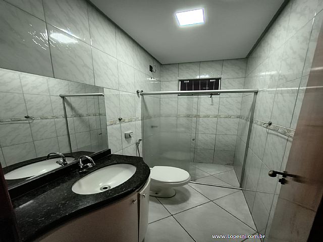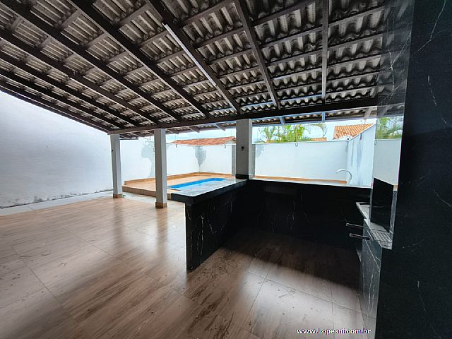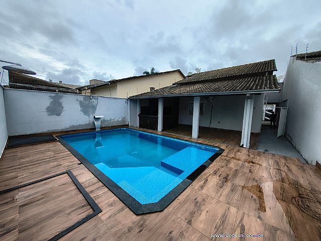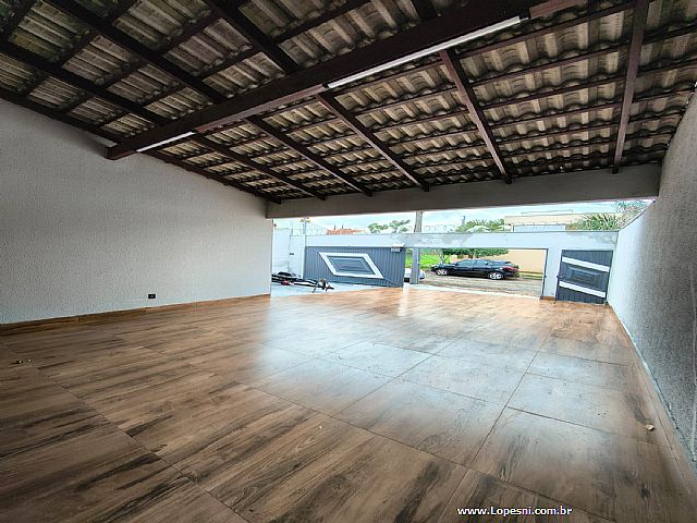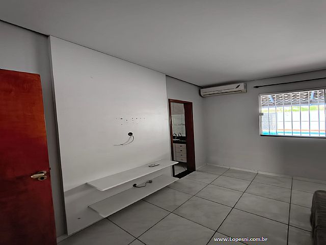 Casa- 3 quartos, sendo 1 suíte, banheiro social, sala grande, porcelanato, cozinha, corredor na lateral com acesso a churrasqueira, área gourmet, piscina, ducha, lavanderia, 6 vagas de garagem.