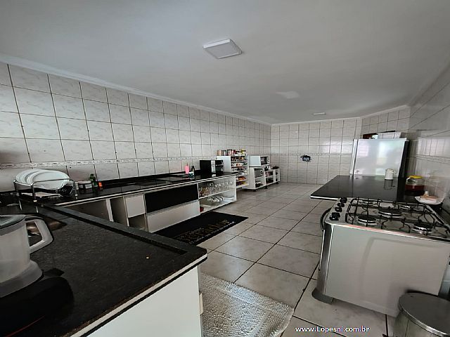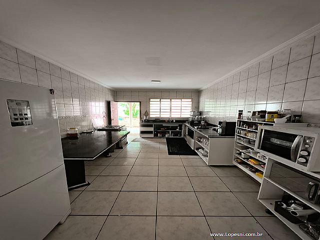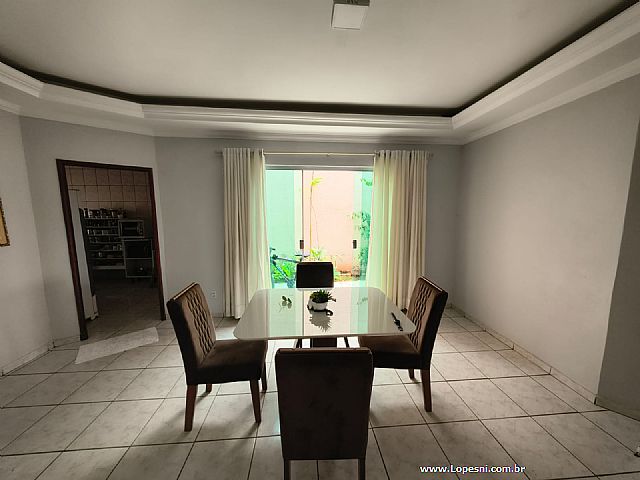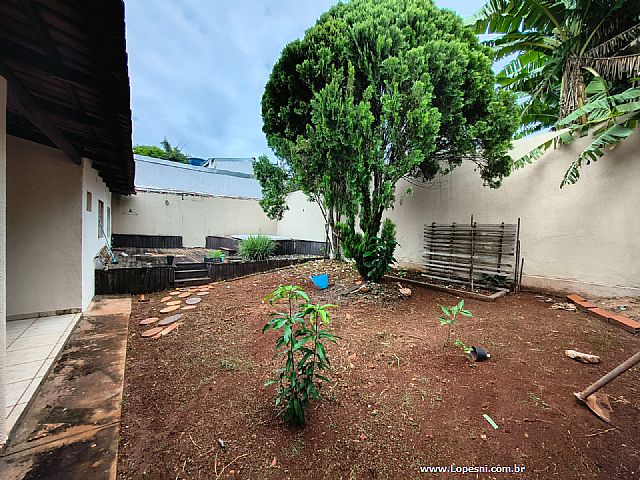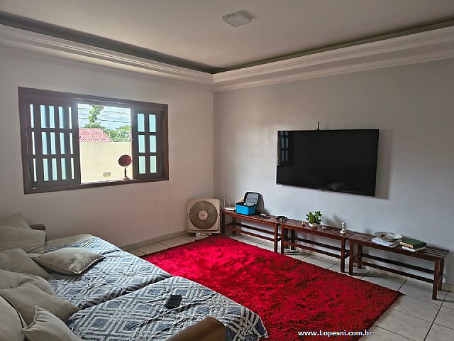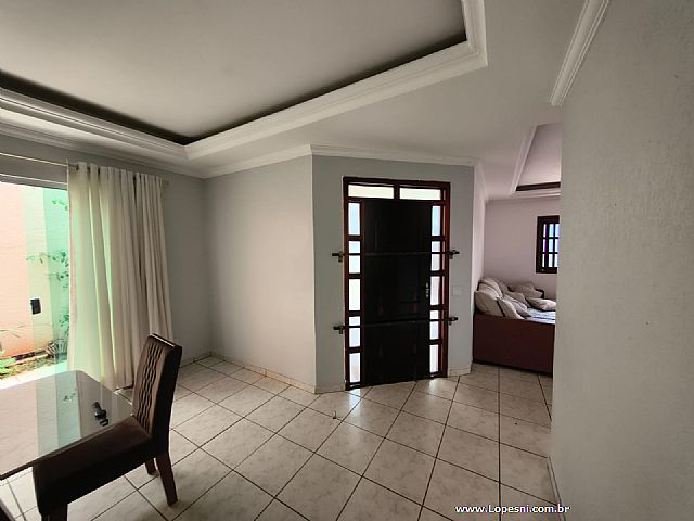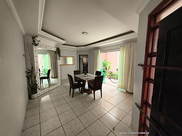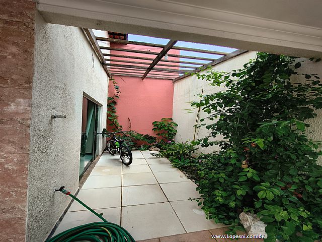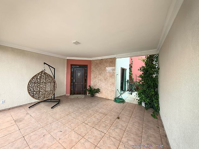 Casa- 3 quartos, sendo 1 suíte com armários, banheiro social, sala de tv., sala de jantar, jardim de inverno, cozinha com armários, despensa, lavanderia, quintal, 6 vagas de garagem.