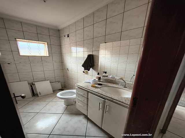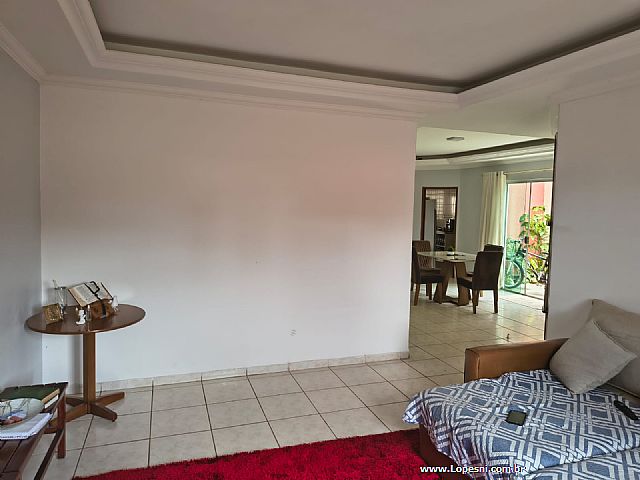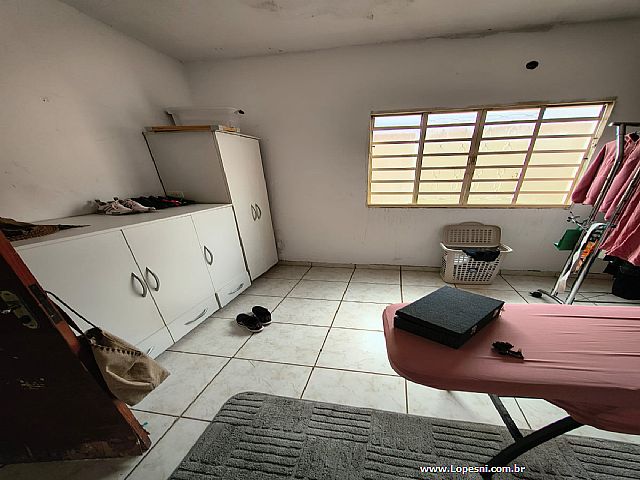 Casa- 3 quartos, sendo 1 suíte com armários, banheiro social, sala de tv., sala de jantar, jardim de inverno, cozinha com armários, despensa, lavanderia, quintal, 6 vagas de garagem.